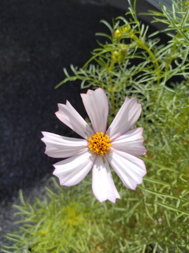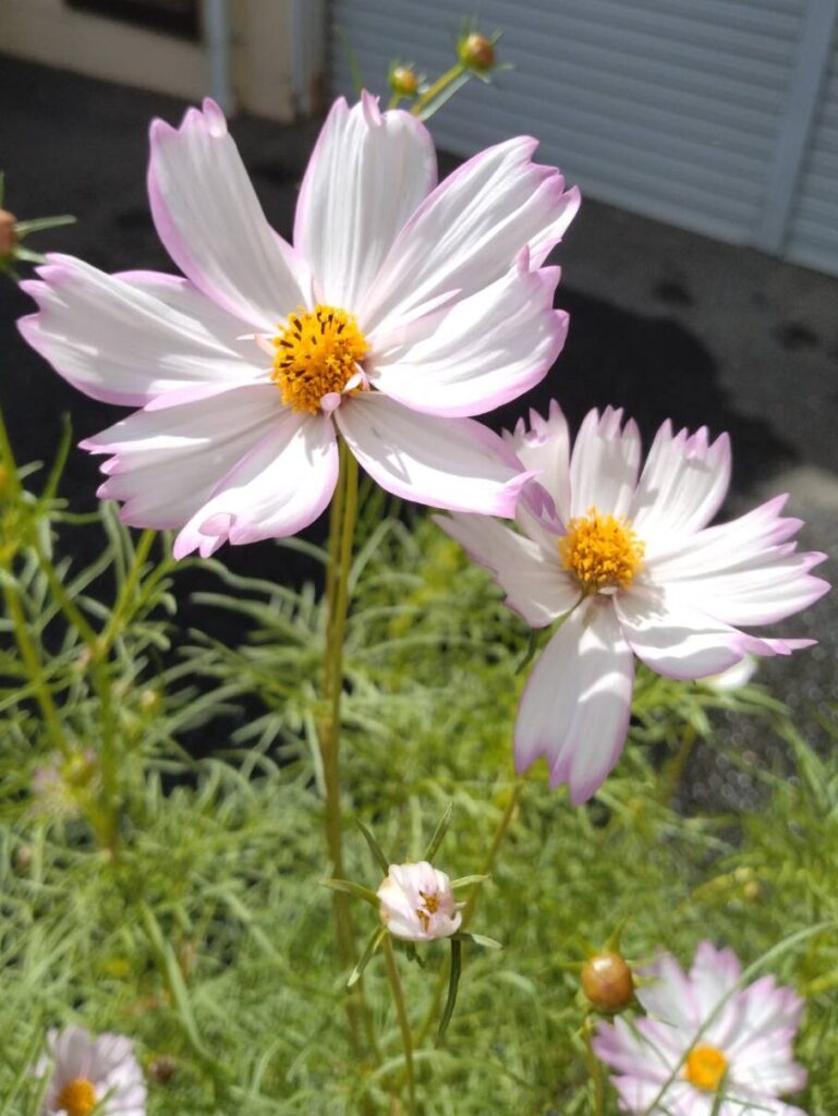 ピンクコスモスが秋の風に揺られて可愛く咲いています。